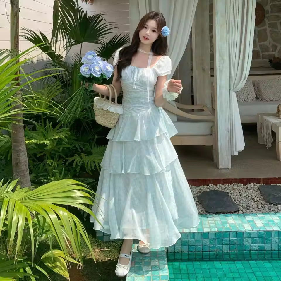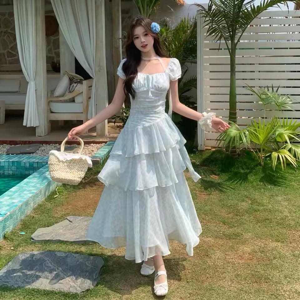 Les volants superposés (tiered) créent du mouvement et du volume, donnant à la robe un effet fluide et féerique.